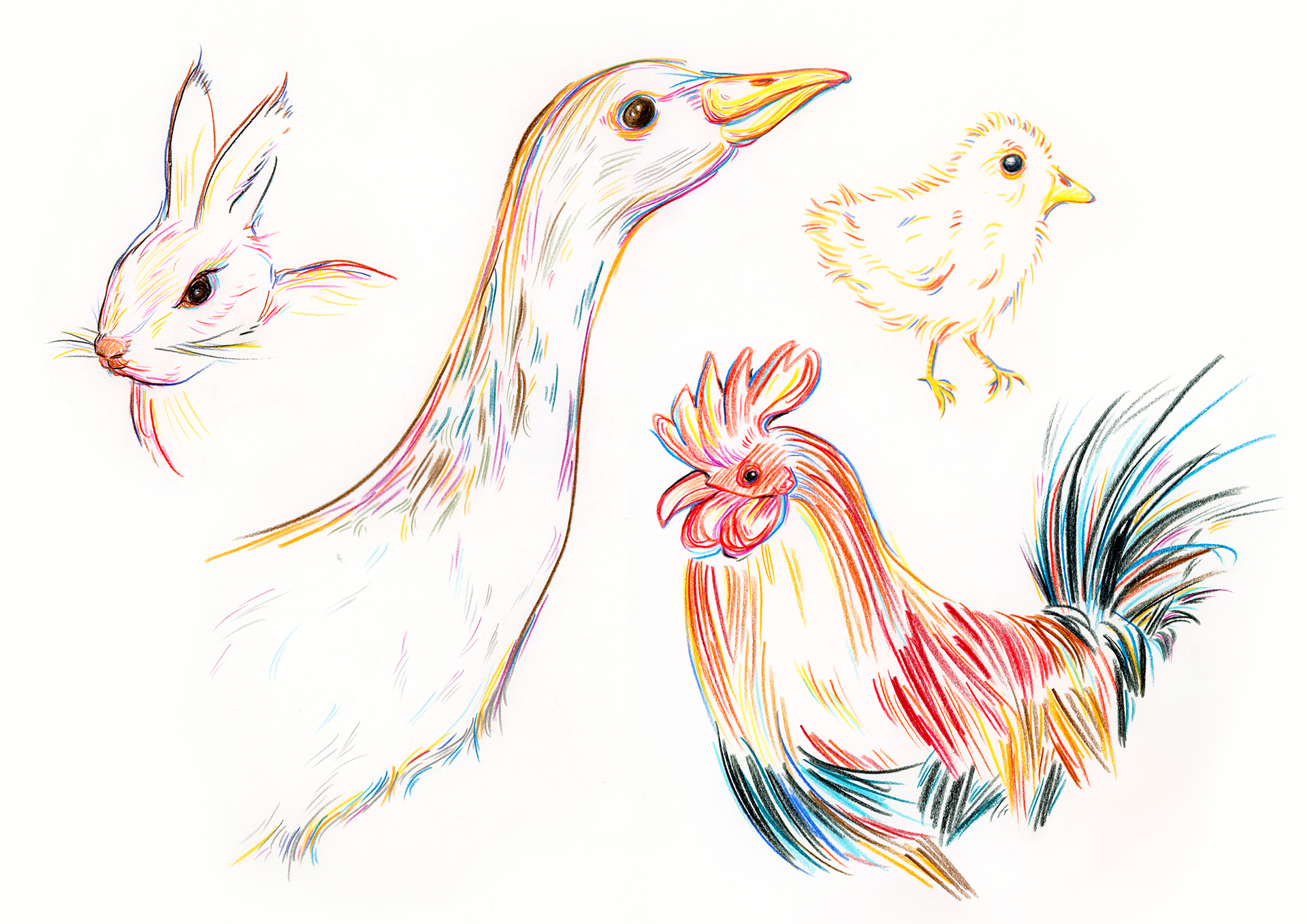 Technique : crayon de couleur sur papier.
